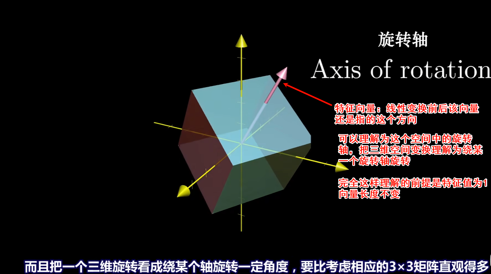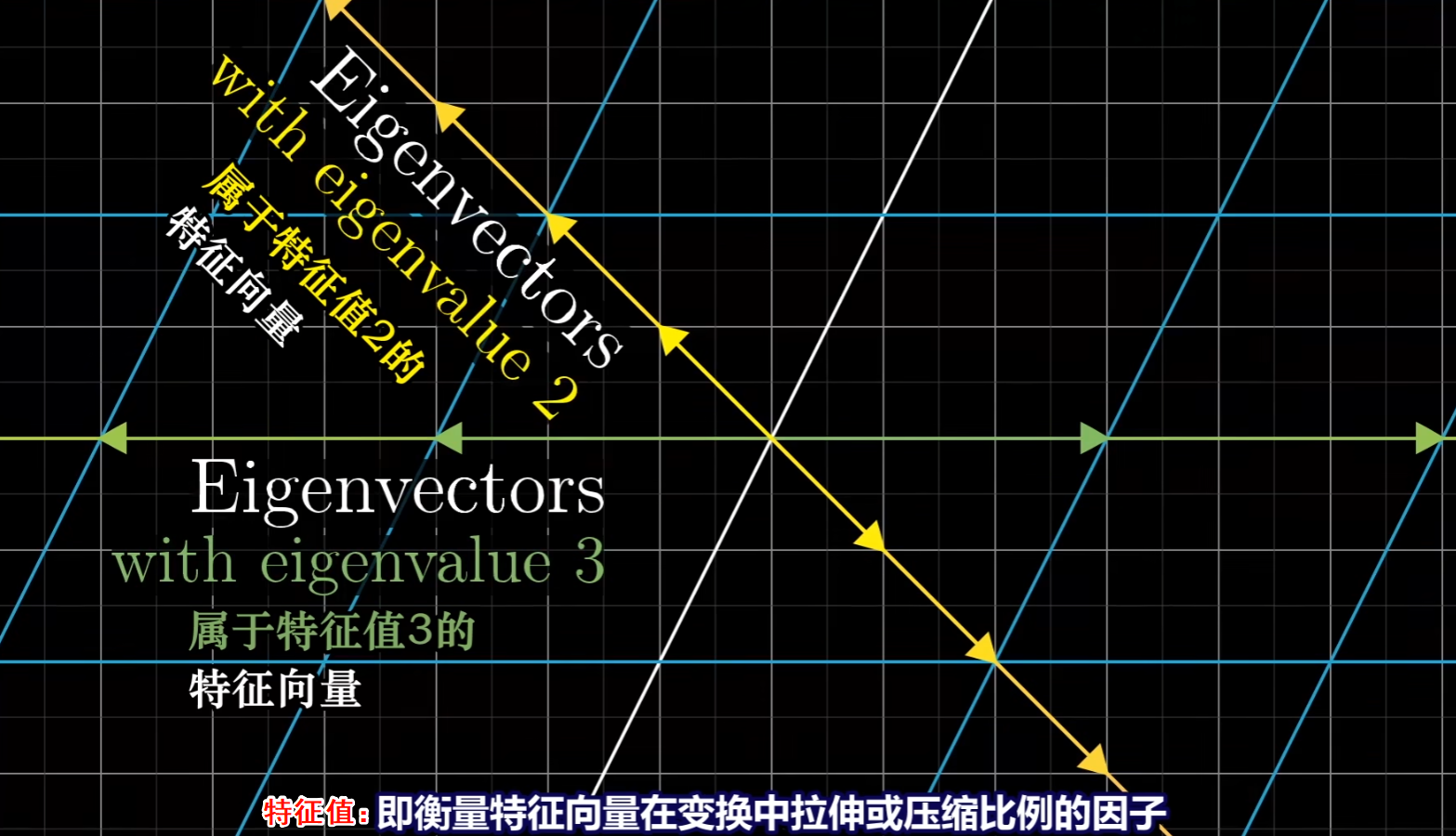 特征向量是那些经过特征变换后仍然在张成空间上自己原本处于的直线上,没有被旋转。特征向量x在经过矩阵 A 的线性变换后,只会改变长度但不会改变方向,而特征值则表示该变换的缩放比例。